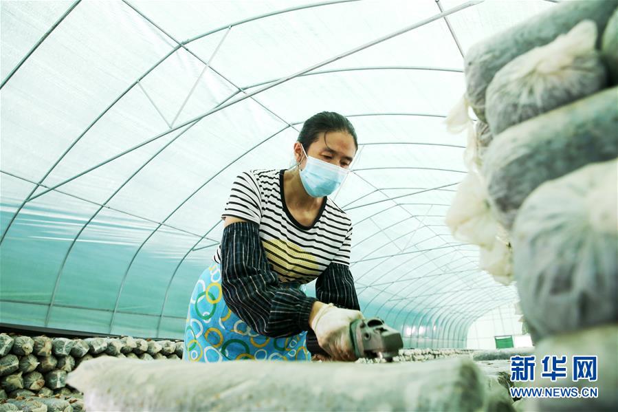 8月27日,在李家溪易地扶贫搬迁安置点食用菌产业园,搬迁户刘超在打理菌棒。 重庆市黔江区城南街道李家溪易地扶贫搬迁安置点是深度贫困乡镇集中安置点。为让搬迁户“搬得出、住得下、能致富”,安置点完善了医院、学校等一系列生活配套设施。同时,该区还在安置点投资兴建了食用菌产业园,引进了服装厂等企业,帮助搬迁户在家门口就业,实现脱贫增收。 新华社发(杨敏 摄)