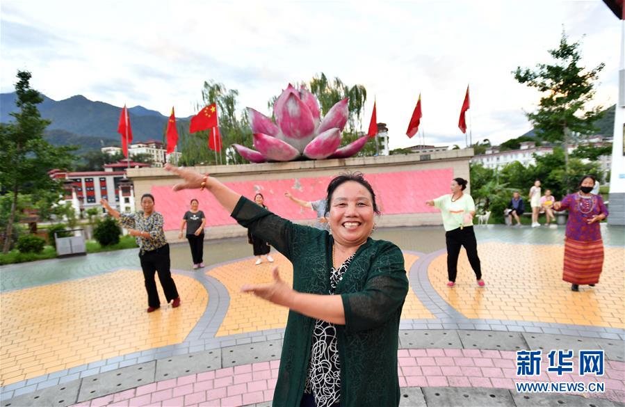 这是8月31日拍摄的跳广场舞的墨脱群众。 西藏林芝市墨脱县位于西藏东南部,平均海拔1200米。因地处雅鲁藏布江下游、喜马拉雅山脉东端南麓,这里湿润多雨,风景秀丽,气候宜人。 新华社记者 觉果 摄