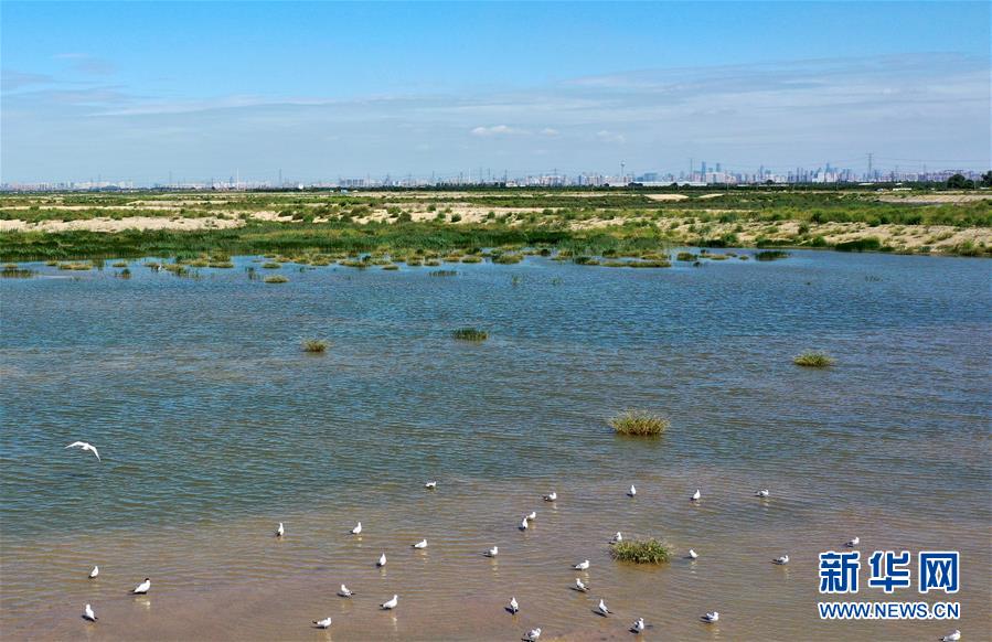 这是西西海生态湿地一景(9月10日摄,无人机照片)。 西西海生态湿地位于天津市西青区独流减河沿岸,占地面积1万余亩。这里原为大片鱼塘,养殖尾水直接排入独流减河造成水体污染。为有效改善和提升独流减河及沿岸的生态环境,西青区对河道沿线300米范围内的渔业养殖水域进行清退,今年4月在原有鱼塘的基础上开始实施水域连通、植被绿化等生态修复工程,构建湿地美景。 新华社记者 李然 摄