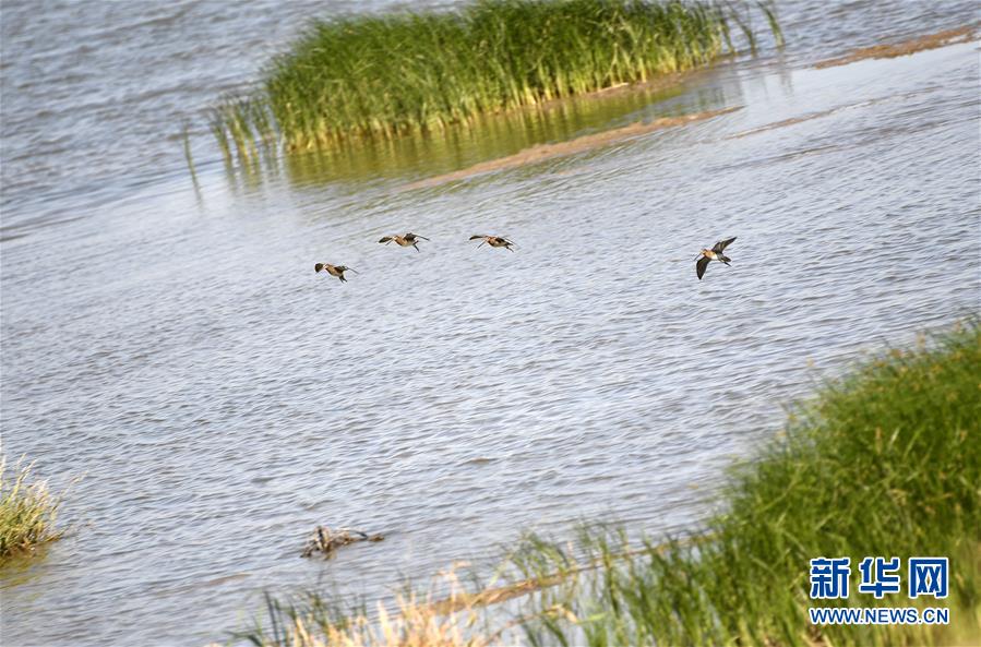 9月10日,几只水鸟在西西海生态湿地飞翔。 西西海生态湿地位于天津市西青区独流减河沿岸,占地面积1万余亩。这里原为大片鱼塘,养殖尾水直接排入独流减河造成水体污染。为有效改善和提升独流减河及沿岸的生态环境,西青区对河道沿线300米范围内的渔业养殖水域进行清退,今年4月在原有鱼塘的基础上开始实施水域连通、植被绿化等生态修复工程,构建湿地美景。 新华社记者 李然 摄