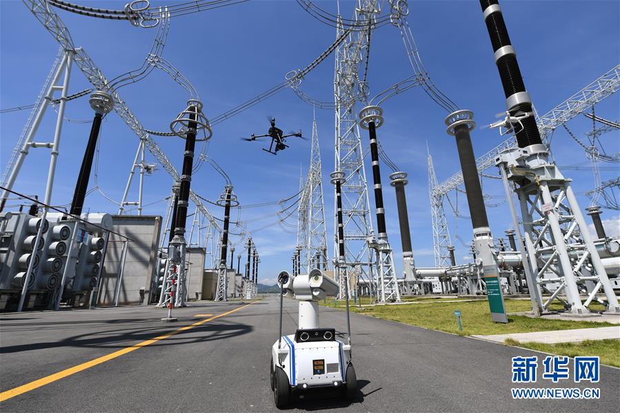 9月17日,在福建省福州市闽侯县大湖乡的1000千伏特高压榕城变电站,三台无人机和地面智能巡检机器人协同进行自主巡检。 当日,在地面机器人的配合下,多架无人机在福建省福州市闽侯县大湖乡的1000千伏特高压榕城变电站实施多机协同自主巡检。据介绍,无人机多机协同自主巡检攻克了变电站高精度三维建模、无人机巡检航线规划、复杂环境抗干扰等难题。 新华社记者 宋为伟 摄