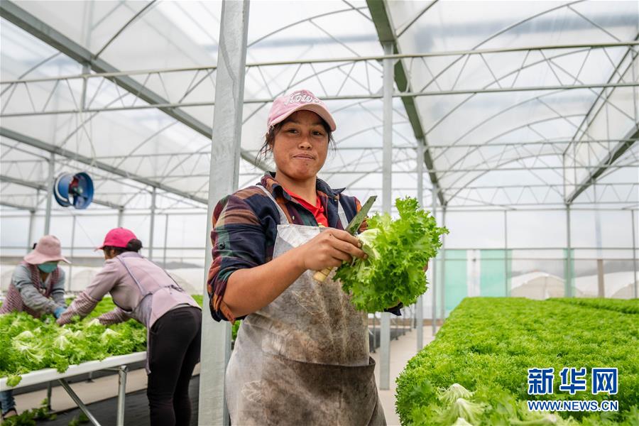 9月29日,搬迁户徐开兰(右)在会泽县华泥产业扶贫基地采收蔬菜。新华社记者 胡超 摄