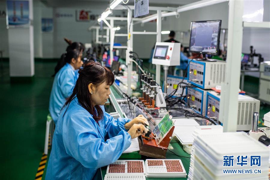 9月29日,搬迁群众在会泽县钟屏街道奋精电子扶贫工厂作业。新华社记者 胡超 摄