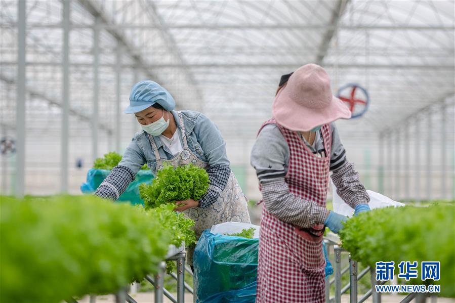 9月29日,搬迁户朱丽(左)和朱丽华在会泽县华泥产业扶贫基地采收蔬菜。新华社记者 胡超 摄