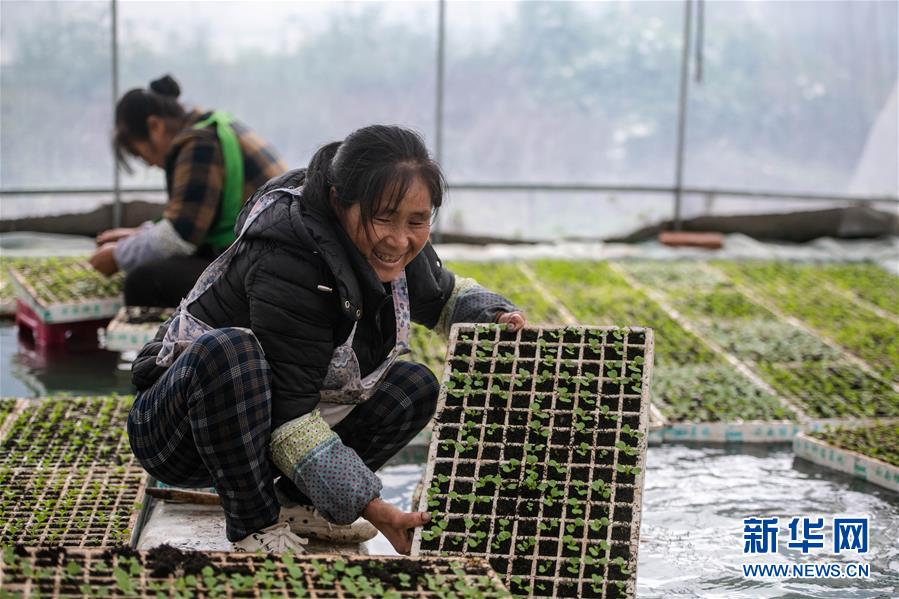 9月29日,搬迁户陈绍莲(右)在会泽县华泥产业扶贫基地大棚里劳作。新华社记者 胡超 摄
