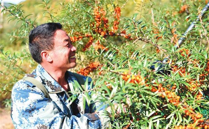 “眼下沙棘已进入丰果期,每亩地可产沙棘果2000多斤,收益3万多元。沙棘浑身是宝,沙棘叶可以炒茶,沙棘果可以做成沙棘油,还能制成各种药食同源产品。”李广先说,今年的沙棘果一律不外销,原因是合作社上了新设备,将新鲜的沙棘果进行深加工,制成沙棘粉、沙棘酒、沙棘茶等成品。