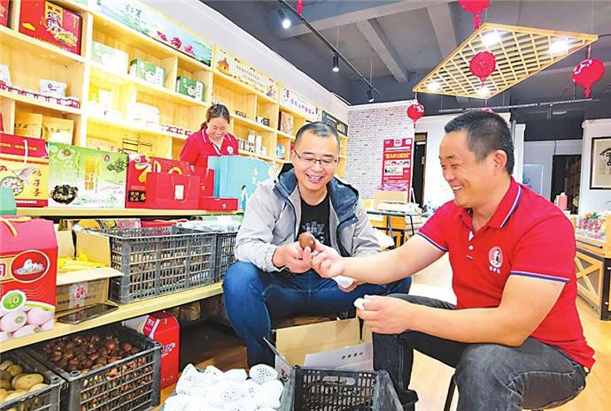 东辽县白泉镇树安村第一书记周子阳(中)把村里电商服务中心搞得有声有色。 记者 隋二龙 摄