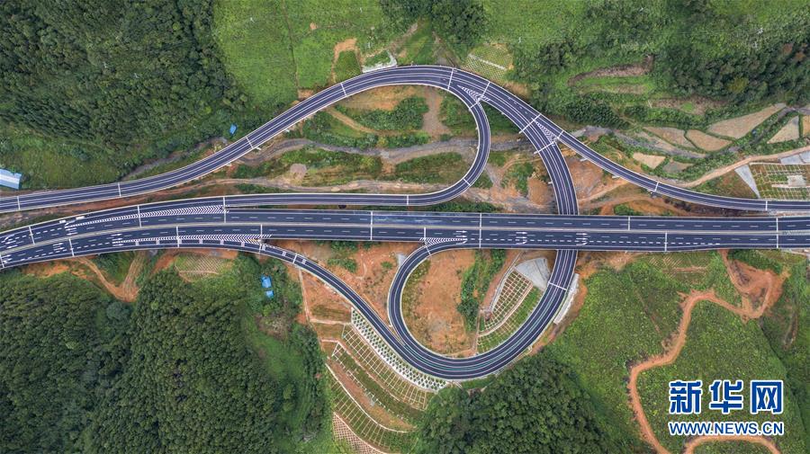 这是剑榕高速寨蒿互通(9月29日摄,无人机照片)。 10月1日,由中交一公局集团有限公司承建的贵州剑(河)榕(江)高速公路开通试运营,实现全线通车。剑榕高速公路跨越三穗、剑河、榕江三个县,全长约118公里。 新华社记者 陶亮 摄