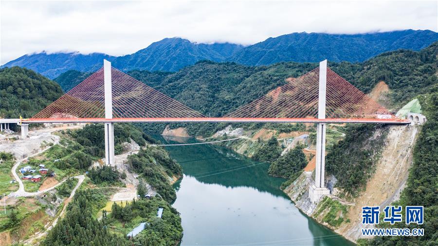 这是剑榕高速清水江特大桥(9月29日摄,无人机照片)。 10月1日,由中交一公局集团有限公司承建的贵州剑(河)榕(江)高速公路开通试运营,实现全线通车。剑榕高速公路跨越三穗、剑河、榕江三个县,全长约118公里。 新华社记者 陶亮 摄