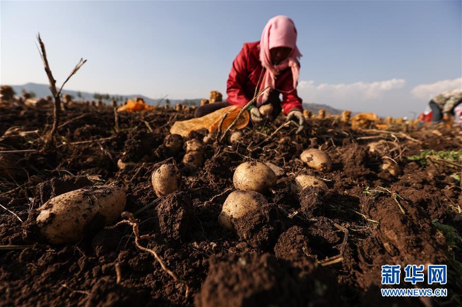 10月10日,海东市互助土族自治县威远镇卓扎滩村,村民在收获土豆。 近年来,青海省海东市互助土族自治县通过发展土豆产业,促进百姓增收。目前正是当地土豆丰收的季节,田间地头一片忙碌景象。 新华社记者 吴刚 摄