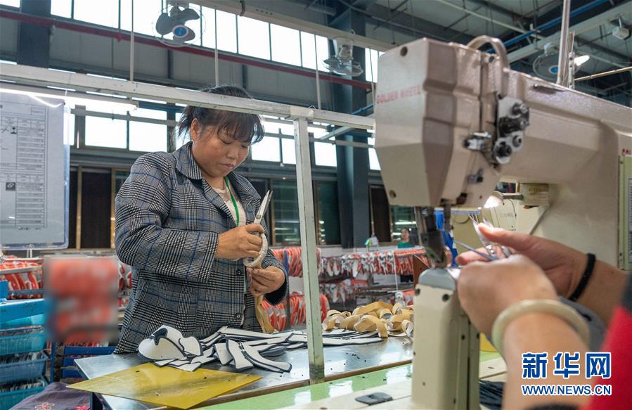 10月12日,在湖南省邵阳市联泰鞋业有限公司,装有假肢的残疾人麻玉美在生产线上工作。 10月14日,中国残联和国务院扶贫办在京联合举办的“2020年全国扶贫日系列论坛——残疾人脱贫攻坚论坛”公布,脱贫攻坚以来,我国累计有近700万贫困残疾人实现脱贫。在脱贫攻坚路上,更多的残疾人身处逆境却自强不息,以坚毅乐观的态度克服自身缺陷,战胜贫困。 新华社记者 才扬 摄
