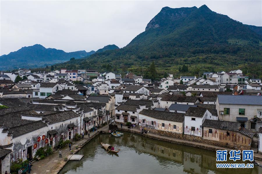 空中俯瞰新叶古村(10月15日摄,无人机照片)。 近日,浙江省建德市大慈岩镇新叶古村举办“晒秋节”,村民们将玉米、南瓜、辣椒等农作物摆放在古村落各处,五颜六色的农作物与传统民居构成一道道美丽的风景,吸引游客纷至沓来。 新叶古村是一个有着800多年悠久历史的古老村落,这里至今完好地保存着16座古祠堂、古大厅、古塔、古寺和200多幢古民居建筑。 新华社记者 徐昱 摄