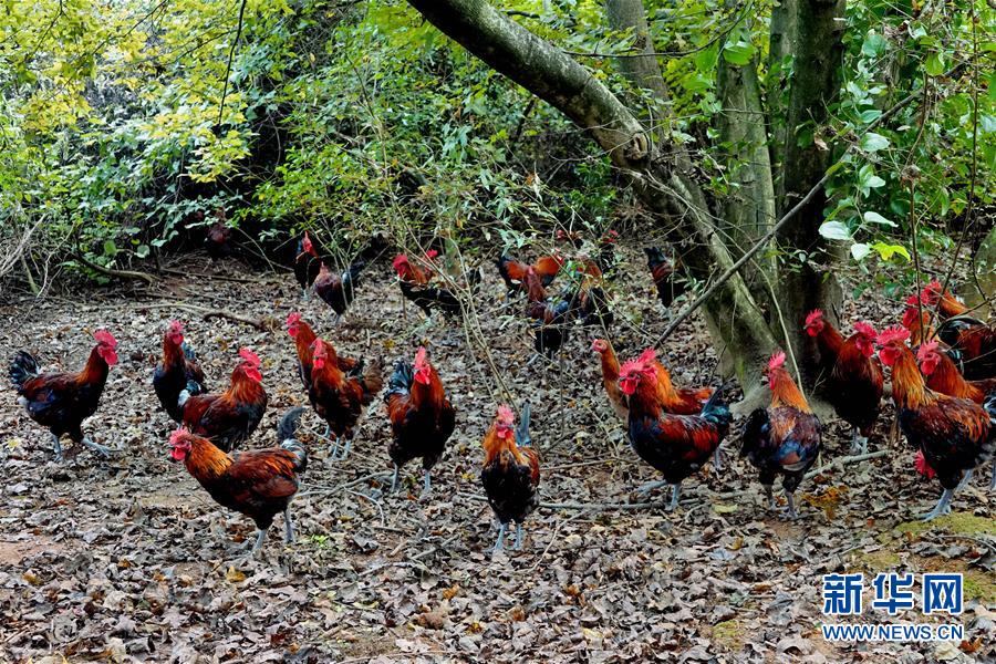 10月22日在江西省崇仁县一家养鸡场拍摄的散养麻鸡。 近年来,中国麻鸡之乡江西省崇仁县全力推进崇仁麻鸡产业优化升级,形成了从原种到加工销售较为完善的产业链。如今,崇仁麻鸡已形成农业特色品牌,成为促进崇仁县农民增收、农业增长、振兴农村经济的一个主导产业。 新华社发(张燕辉摄)