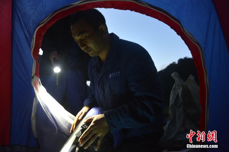 早晨天刚亮,运维员收拾起帐篷准备开展巡检工作。 张浪 摄