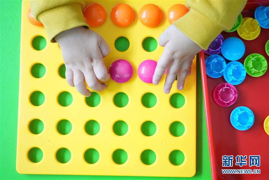 11月5日,在延安市博爱医院康复部,患儿参加康复课程。 陕西省延安市博爱医院是延安市残疾儿童定点康复机构,其康复部现有医护人员65名,采用中西医结合方法治疗小儿脑瘫、孤独症,开展言语训练、作业治疗、感觉统合训练等,促进患儿共同发展,早日融入社会。 新华社记者 才扬 摄