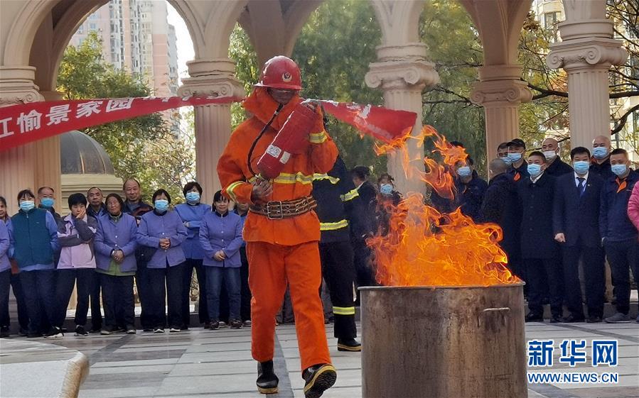 11月9日,北京市朝阳区珠江愉景家园的物业公司和社区工作人员组织居民以及物业管理人员开展消防演练。 当日是全国消防日,各地纷纷开展消防安全宣传活动,提高人们的消防安全意识与应急避险能力。 新华社记者 李欣 摄