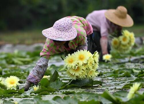 柳北区石碑坪镇将水田进行资源整合,打造九品香水莲花种植基地,并对花朵进行加工,制成莲花茶,提升了经济效益,成为农民脱贫致富的新途径。