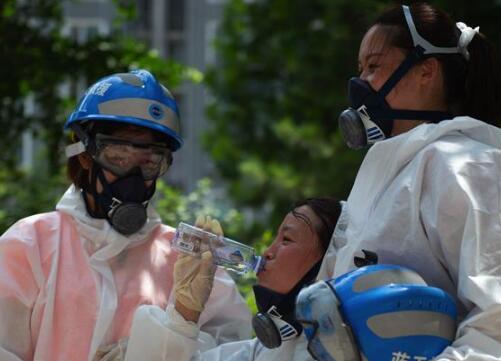 连日来,北京出现高温天气。酷暑中,工作人员坚守抗击疫情一线,成为烈日下的“逆行者”。