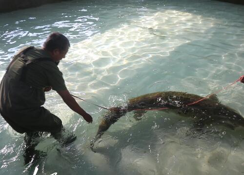 目前,这条达氏鳇生命体征平稳,正在救助中心精心养伤,等待进行人工产卵后放生回归。