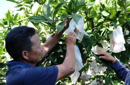 在漳州市东山县前楼镇叶厝村的精准扶贫基地莲雾果园里,詹锦成向叶厝村前村委会主任、种养大户叶员发请教莲雾种植技术。
