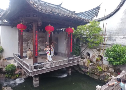 5月19日,讲解员缪妙在福州历史文化街区三坊七巷直播介绍古厝文化。当日是中国旅游日,福州推出“云游坊巷”专题直播活动,让各地游客通过网络“云游”福州古厝和坊巷等。
