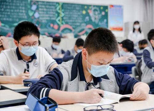 5月20日,湖北省水果湖第二中学初三学生佩戴口罩上课。当日,武汉初三学生返校复课。