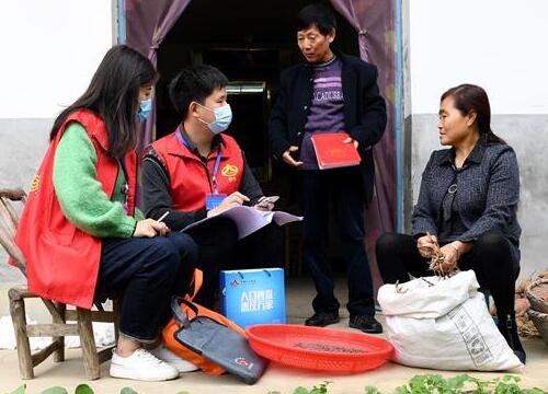 湖北省襄阳市保康县城关镇普查员、普查指导员在居民家中进行信息登记后,居民核实后签字确认。