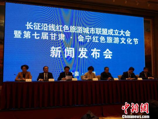 当日,长征沿线红色旅游城市联盟成立大会暨第七届甘肃·会宁红色旅游文化节新闻发布会在兰州举行。