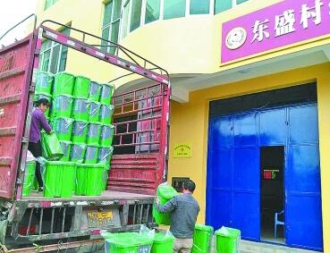 福建省福清市东盛村购置的“干湿”垃圾桶。光明图片