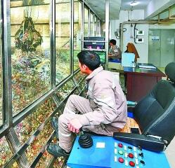 福建省福清市垃圾焚烧发电厂工作人员正在处理生活垃圾。黄立新摄/光明图片
