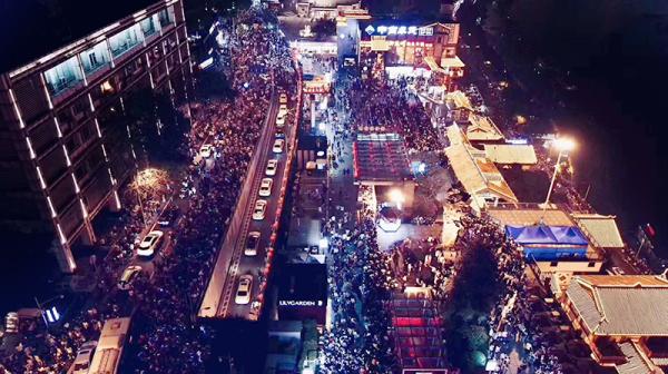 重庆网红景点洪崖洞人员饱和 景区限流只出不进