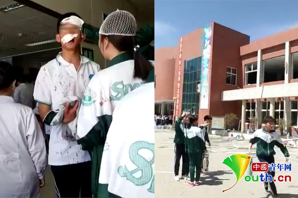 现场视频显示,校园内许多玻璃被震碎,许多学生在医院内排队等候包扎。