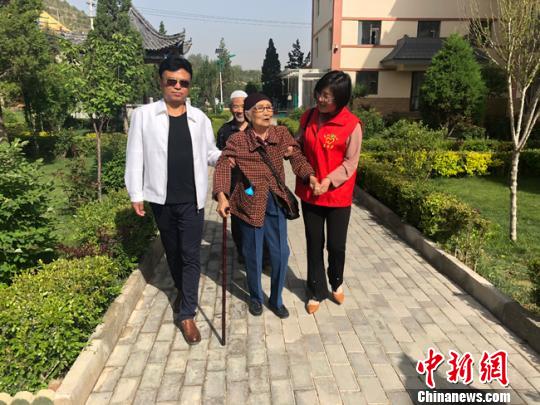 图为入住七里河区半山民族养老院的老人在志愿者和家人的陪同下散步。 达媛 摄