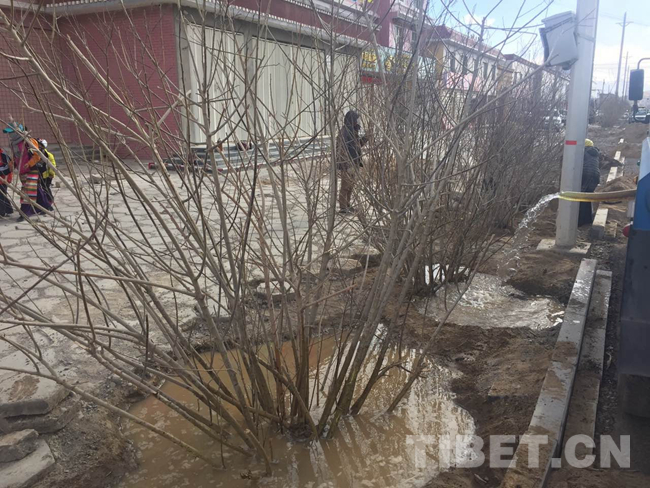 图为对树苗进行精心的栽种和灌溉。噶尔县委提供