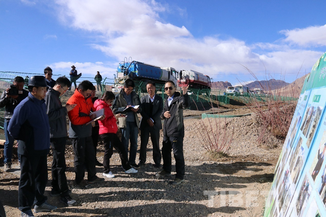 图为阿里地委和噶尔县的干部们介绍绿化工程。噶哇扎西摄