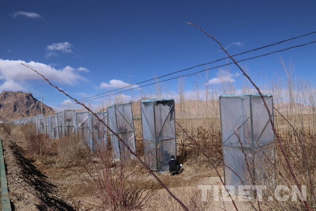 图为用薄膜和支架精心保护起来的毛头柳。噶哇扎西摄