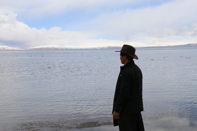 这位藏装男子叫白玛旺杰,曾经是一名野保员,现在是玛旁雍错湿地吉吾管理站站长。2005年,玛旁雍错被国际湿地公约组织批准为国际重要湿地,2017年7月晋升为国家级湿地自然保护区后,普兰县林业局设立了6个管理站、3个管护点以及1个检查站,90名专职管护员全部到岗开始进行巡逻。
