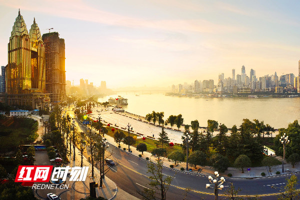 5月13日,夕阳下,长江河畔的南岸区南滨路整洁靓丽。
