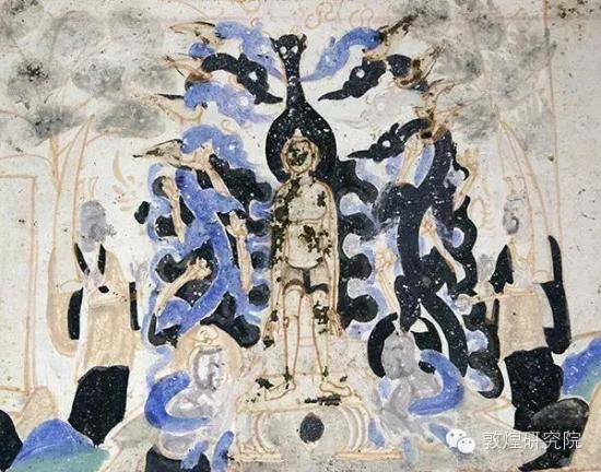 图为敦煌莫高窟北周第290窟,描绘着龙神为刚出生的悉达多太子沐浴灌顶的画面。 敦煌研究院 供图