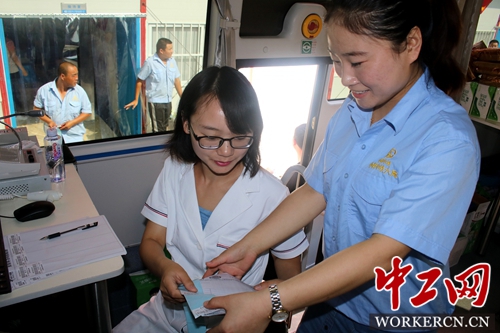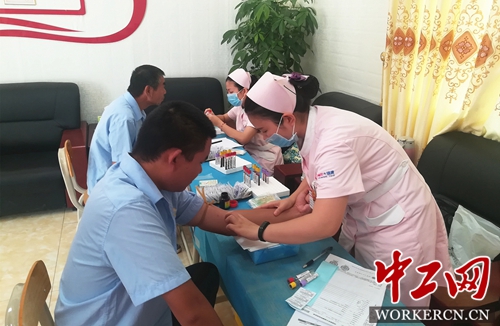 “平时要控制饮酒,少吃生冷食物,尤其注意卫生,防止病毒传染。现在天气炎热,特别要防止中暑。好,下一位!”6月29日,承担赣深铁路预制梁场及铺轨基地任务的中铁六局丰桥项目部,组织当地卫生院为项目部约60余名职工及劳务工开展了免费体检活动。大家排着长队,有做血常规检查的、有健康咨询的、有量血压的……医生也详细询问每一位工人的身体状况、既往病史,为他们建立详细的健康信息档案,并向他们发放信息卡,建立沟通联系渠道。