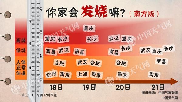 中国天气网讯 昨天(17日)起,进入一年当中最热的三伏天。未来一周,从黄淮到江南一带依然维持大范围高温天气,湖北、湖南、江西部分地区最高气温达37-39℃。同时,随着降雨离去,京津冀一带也将陆续加入高温阵营,迎来闷热桑拿天。