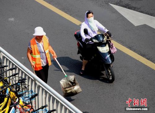 7月17日,河南郑州热浪滚滚,高温下工作的环卫工人。中新社记者 王中举 摄