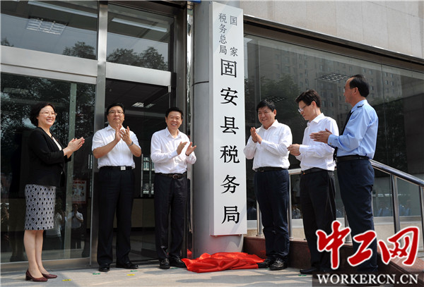 在县乡国税地税机构合并挂牌这一重要改革节点,税务总局领导再次分赴各地督导调研改革情况和下半年税收重点工作,并参加了当地县级新税务机构挂牌仪式。税务总局党组书记、局长王军在河北省固安县调研,与河北省委常委、常务副省长袁桐利共同为国家税务总局固安县税务局揭牌,赴办税服务厅和新挂牌的乡税务分局看望基层税务干部并座谈。