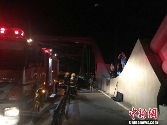 据了解,鲁家峙大桥是舟山本岛通往鲁家峙岛的一座桥梁,除此之外还有一个隧道连接舟山群岛和鲁家峙岛。21日22时许,记者抵达鲁家峙大桥,大桥中间位置依稀还能看到一丝明火。现场,电力、消防、公安交警等部门已开展相关抢修工作。