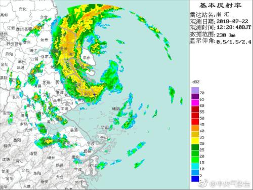 中新网客户端7月22日电(记者 阚枫) 中央气象台最新消息,今年第10号台风“安比”(强热带风暴级)的中心已于今天(22日)中午12时30分前后在上海市崇明岛沿海登陆,登陆时中心附近最大风力有10级(28米/秒),中心最低气压为982百帕。