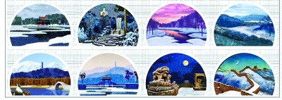 针对这8个美景,有两套不同的方案。其中主选方案就叫《燕京八景》,但创新地表现为冬日雪景,也突出传统园林、宫囿建筑的美感(见上图);备选方案《古都瑞雪》的八幅景都着力表现了瑞雪映照下的古都北京,包含了长城的壮丽、北海的秀丽、天坛的神圣、颐和园的端庄。
