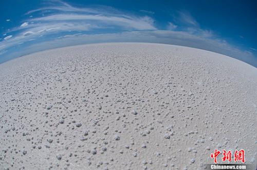 察尔汗盐湖中,达布逊湖的迷人景色。中新网记者 富宇 摄