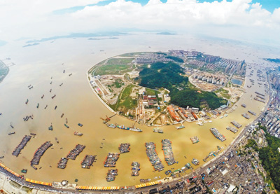 8月1日,浙江舟山群岛新区沈家门渔港内桅樯林立。台风“云雀”将至,为确保安全,渔船都锚泊在渔港内。