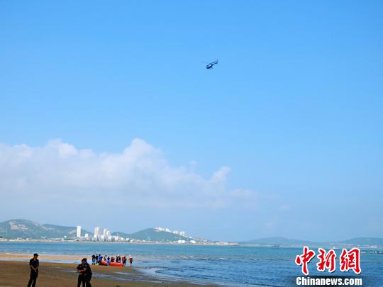 在海上搜救的同时,直升机在空中进行同步寻找。 刘海龙 摄
