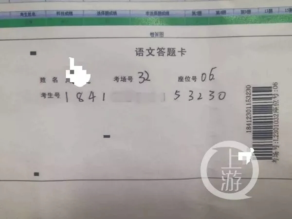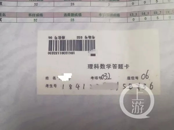 卢晓梅女儿四张答题卡上的准考证号均不一样